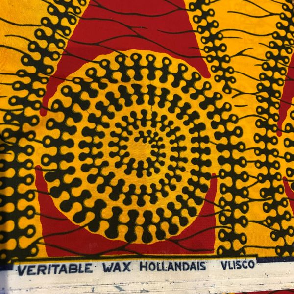 Magnifiques couleurs jaune et rouge pour ce joli tissu wax « Vlisco Véritable »
