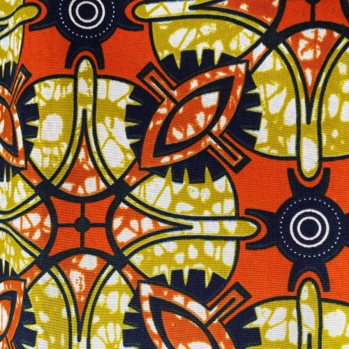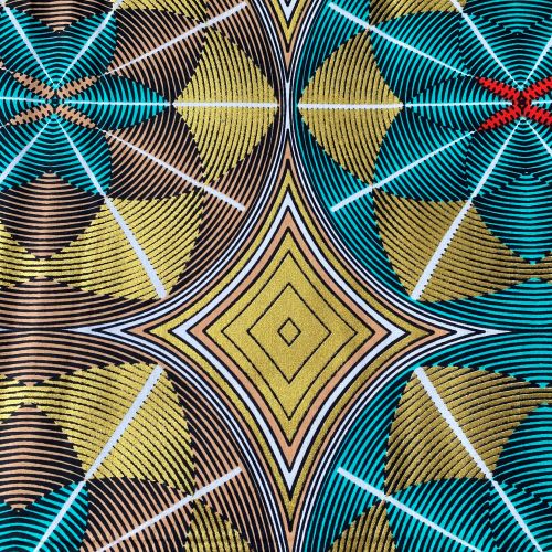 Magnifiques couleurs et superbes motifs pour ce joli tissu wax doré
