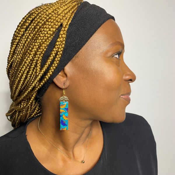 Superbes boucles d’oreilles en papier de bois, et résine. De fabrication 100% artisanale d’inspiration wax « fleurs de mariage »