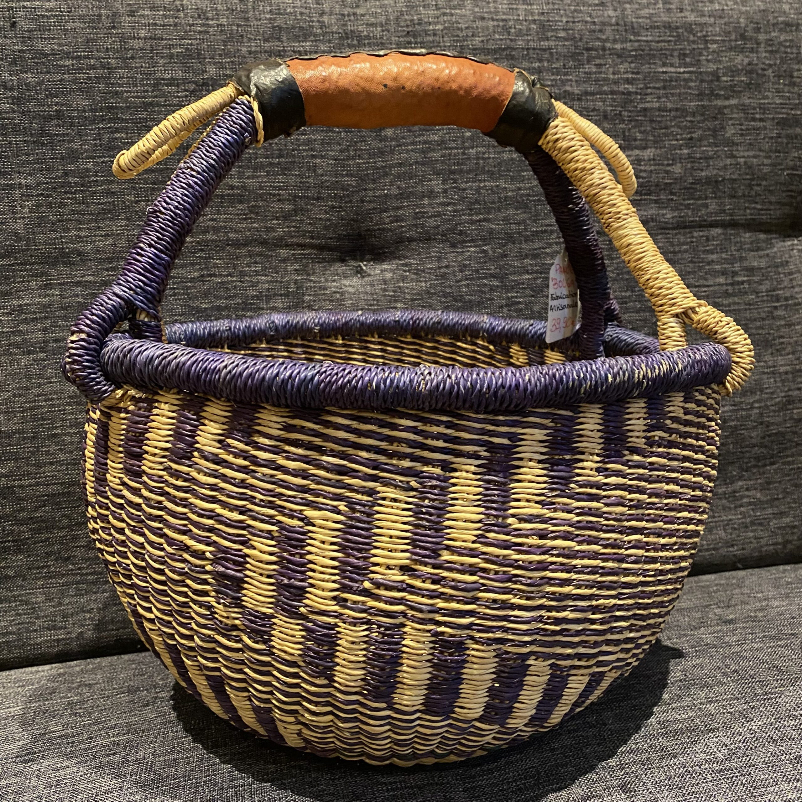 Ce superbe panier en osier est une création artisanale des artisans tisseurs du Bolgatanga au Ghana.
